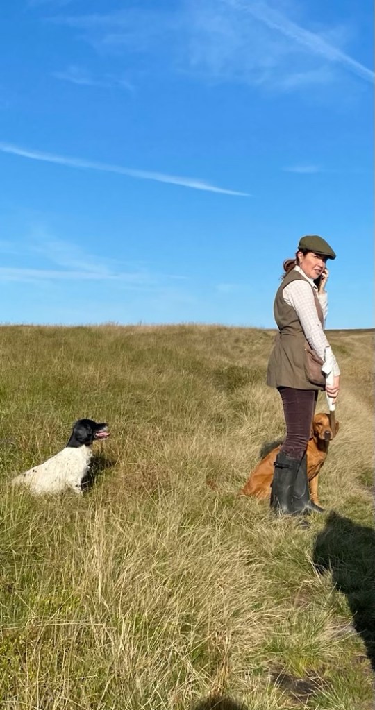 Hunting: As we ventured across Cowling Moor this morning there was some grouse hunting going on. There was about 12 people with flags waving and their dogs ready. When this lady, dressed very sharp, blew her whistle everyone began to walk in a circle waving flags. Chasing the grouse toward the men with the guns. We learned later that property owners charge a lot of money for permits for this type of “organized” hunting. Then on the other side of the moor we walked by a “village” of hunting cabins. Regular guys go hunt from these cabins, shoot a few grouse for themselves.