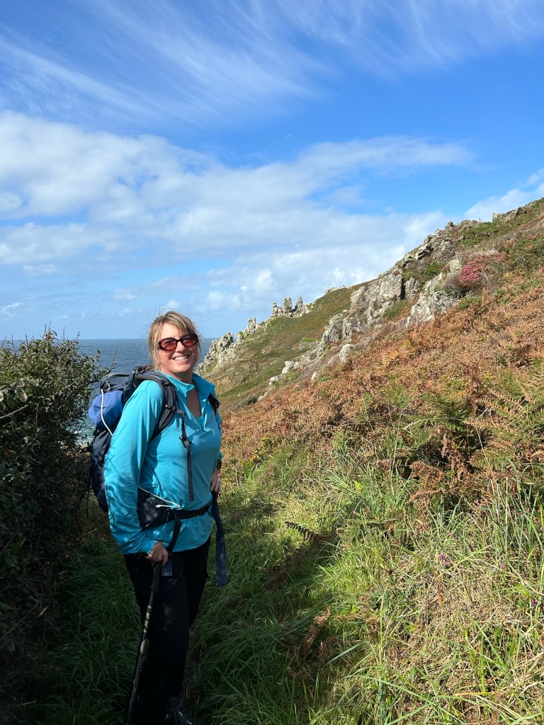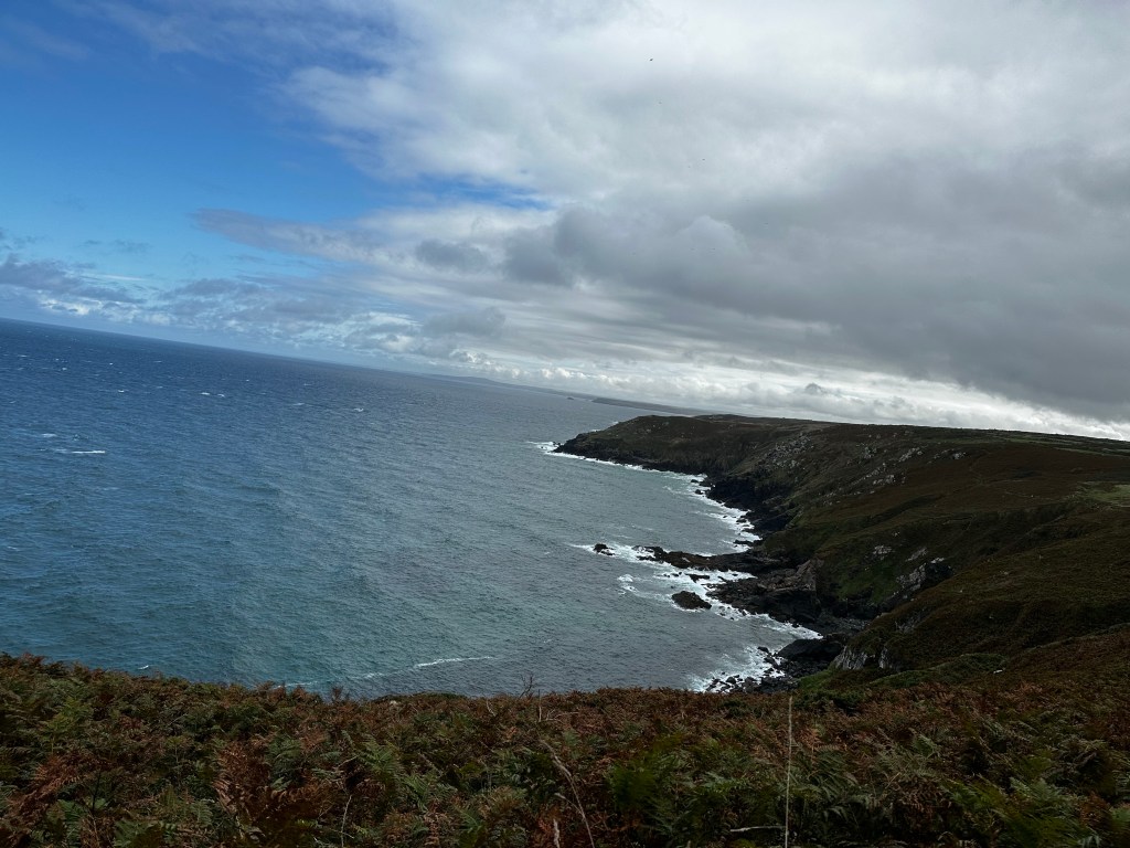 It is hard to capture the astonishing beauty of the cliffs we’re walking on. Photos just don’t begin to capture it. The waves are huge, the wind is overwhelming and the sun, even when it is covered by clouds is hot. And it’s cold too! There is so much overwhelming the senses, not to mention the physicality of it. It was hard work today and right my muscles are so tired.