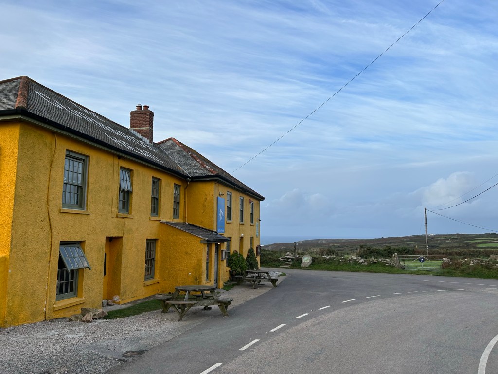 I’m starting with the end of the day because after a hard 11 miles, we are staying at this very interesting little inn. Gurnards Inn. It is a 300 year old coaching inn in this tiny village, Treen. And old mining village from the 1800s that has a few homes and farms now. But this inn. When we arrived there was a traffic jam because of the cows coming home.