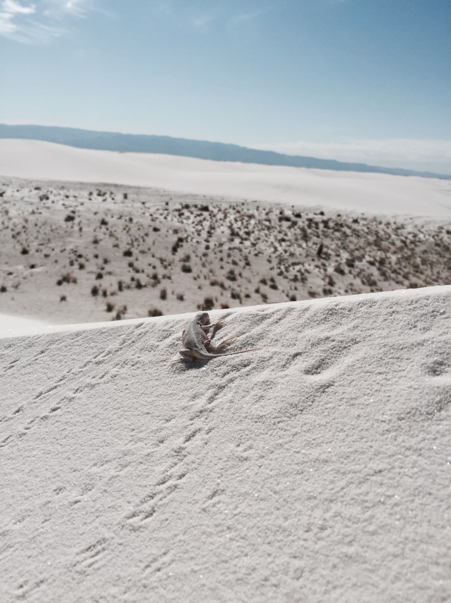 White Sands National Park Sometimes living in the desert I am struck by how harsh the living conditions are. Just a few miles up the Sandia Mountains on the outskirts of Albuquerque, the landscape is dry and hot, filled with cacti and rattlers. It is not a hike for the faint at heart, or those …